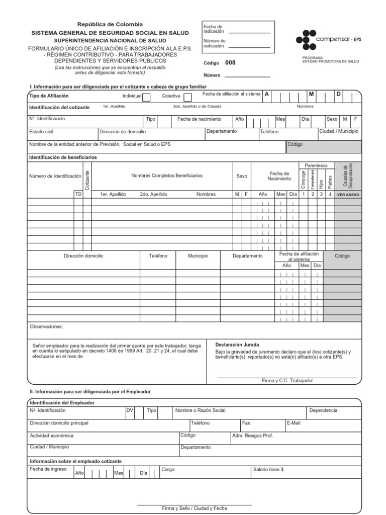 Formulario De Afiliacion Famisanar Descargar Pdf