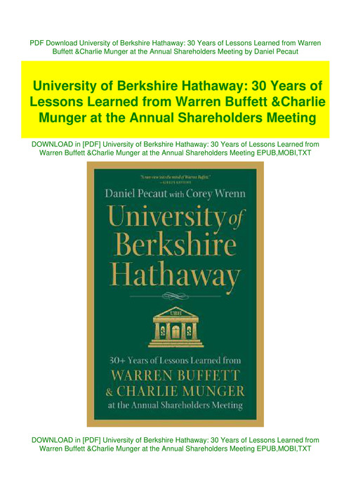 Title: Pdf Download University Of Berkshire Hathaway 30 Years Of Lessons